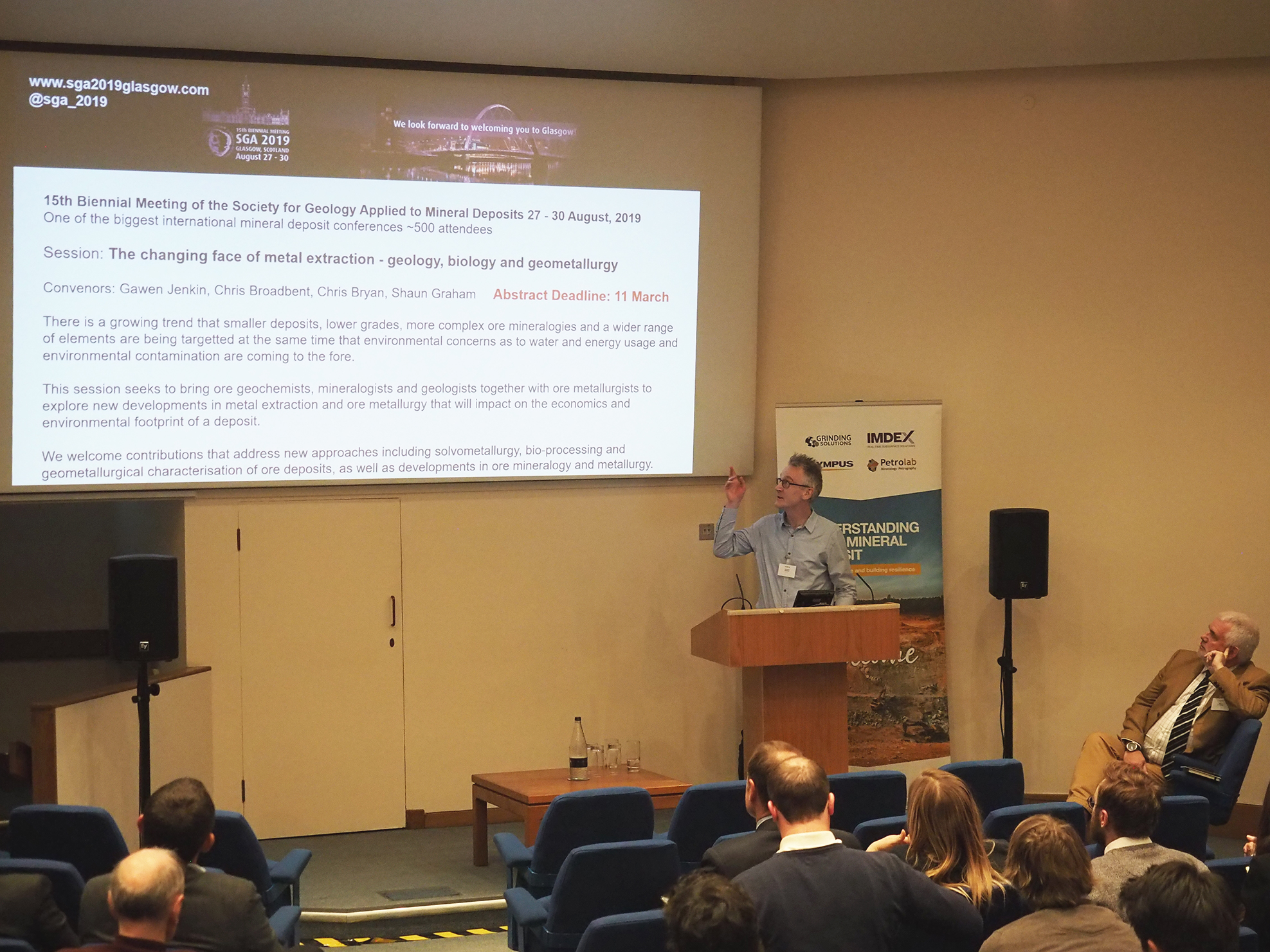 Dr Simon Dominy, Visiting Associate Professor, Camborne School of Mines, opened with his keynote ‘Geometallurgy – A route to unlocking deposit value‘ which set the scene for the afternoon session. Simon reminded the room of the current challenges being faced by the mining industry from lower ore grades, more complex deposits, mine waste management, higher costs, processing challenges to commodity market volatility. Simon went on to present the Geomet approach which allows exploration and investment companies to reduce project risk and maximise NPV.